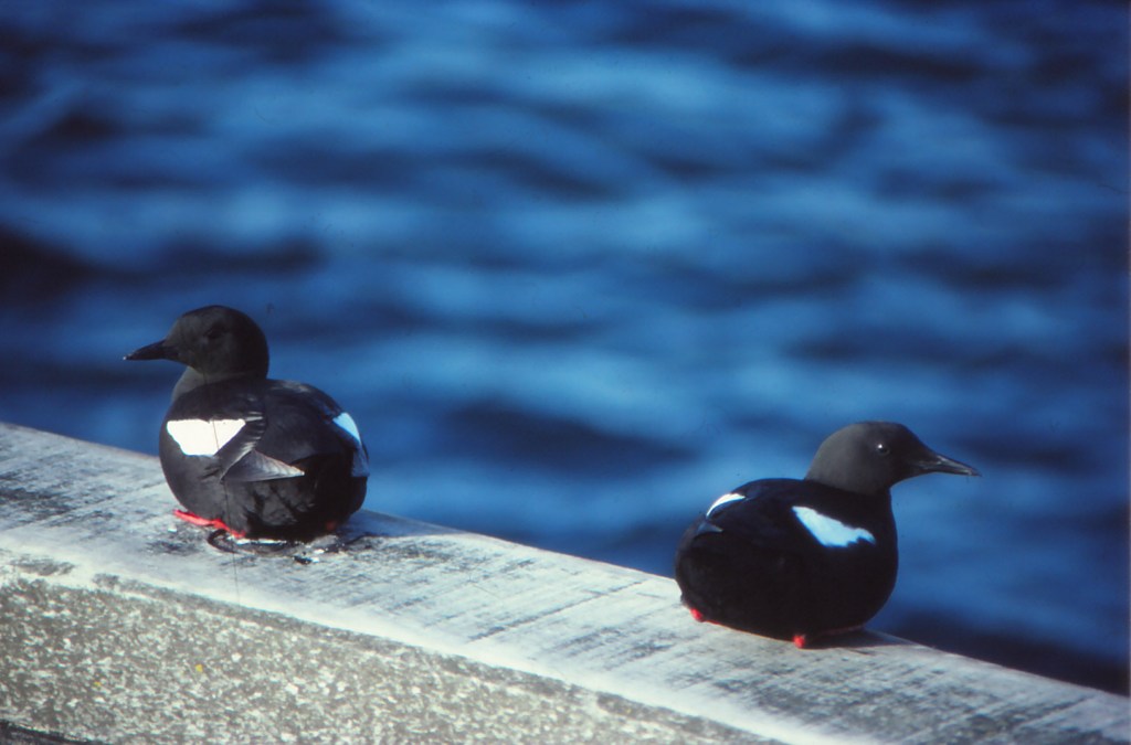 It soon became pretty obvious that the nesting grounds of black guillemots were controlled by the presence or absence of rats. They would only nest where rats could not get to them. They also would not nest where other auks were nesting. This left them offshore islets, cliffs above c10 m high and certain man-made structures such as harbour jetties. Finding these charming birds in numbers considerably above those previously thought to occur, during idyllic early morning April conditions, still remains one of my favourite surveys.