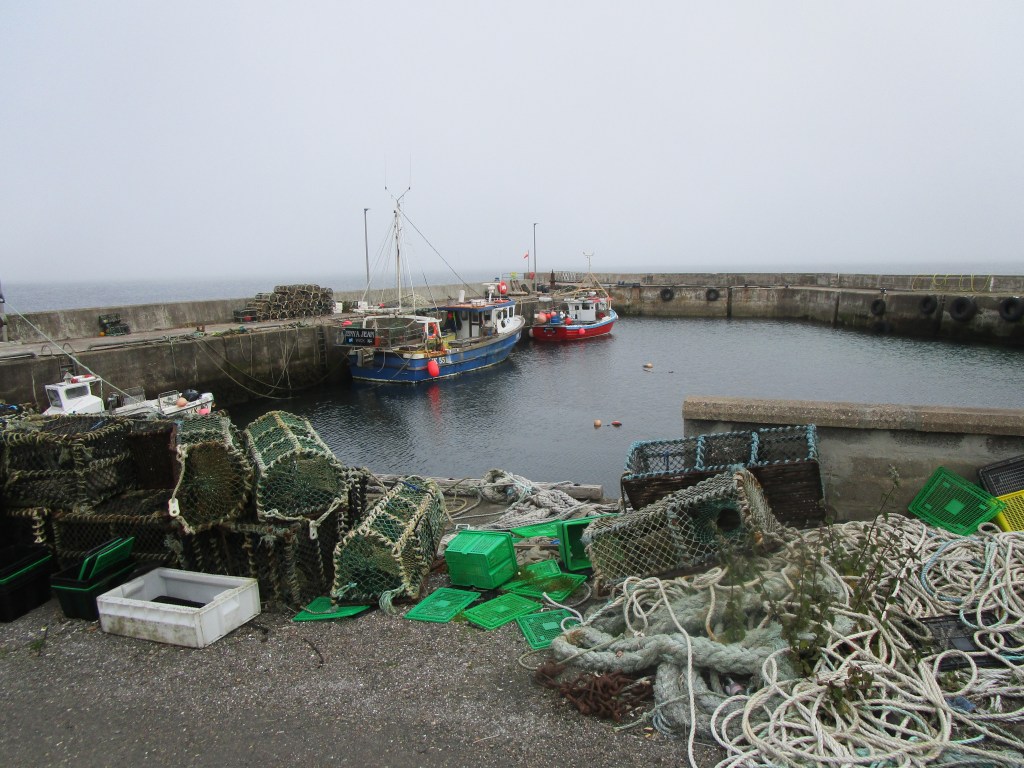 After a short ride in sea haar, I arrived at John O’Groats. In the same way as Land’s End, I am not quite sure why it has gained its popularity – all a bit tawdry – however the compulsory photo at the signpost was required – no professional photographers here and you’ll note the post is covered in stickers. John O’Groats harbour is rather fine though – geared for crustacean fishing in the extreme conditions of the Pentland Firth.