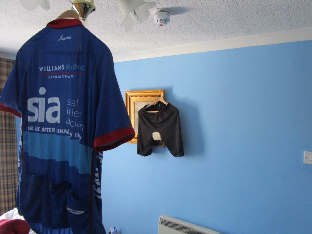 Not illustrated are two pairs of underpants, and two T-shirts for use when not cycling, and three pairs of woollen socks – rotated each day and washed out along with the shorts and jerseys.