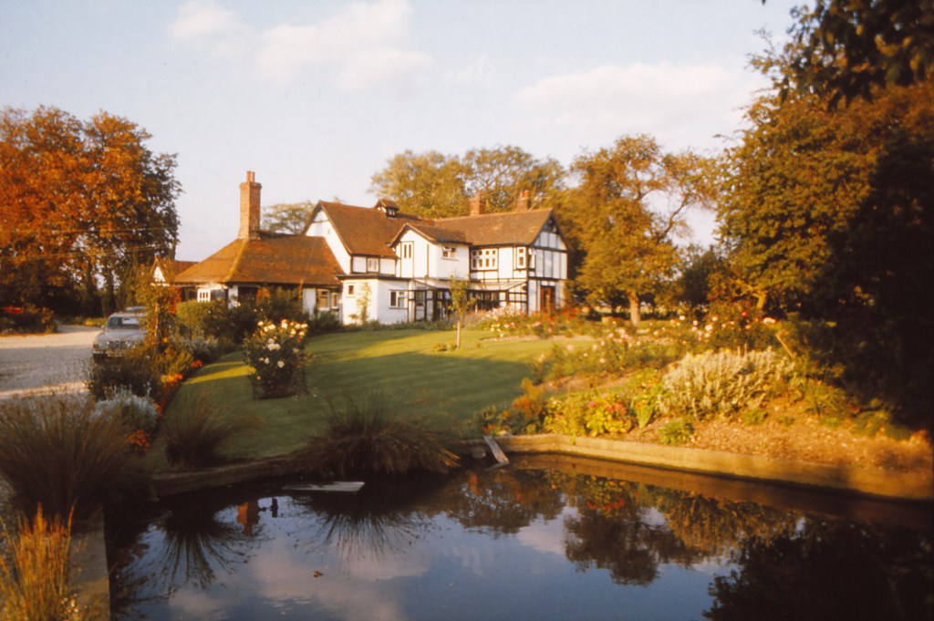 In 1960, we moved out of town to the north-east to a Tudor farmhouse, originally called Old Farm House, but now just Old House. The original building had been added to but the old core of the building had low beam ceilings that always a hazard to Dad, and became so to all of us as we grew taller. The garden was large and took a lot of Dad and Mum’s time to keep tidy. A thatched barn was all that remained above ground of the site’s agricultural heritage, but the footings of a much larger barn that had been destroyed by an incendiary bomb in the last war were evident close to the house (I think this barn may have been larger than the house).