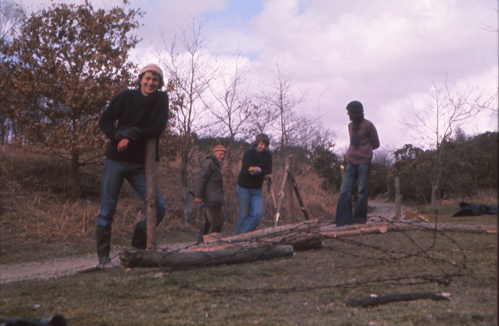 Behaving ourselves at Minsmere in the mid 1970s – Richard and a workparty put up a fence somewhere near the best place to spot adders on the reserve