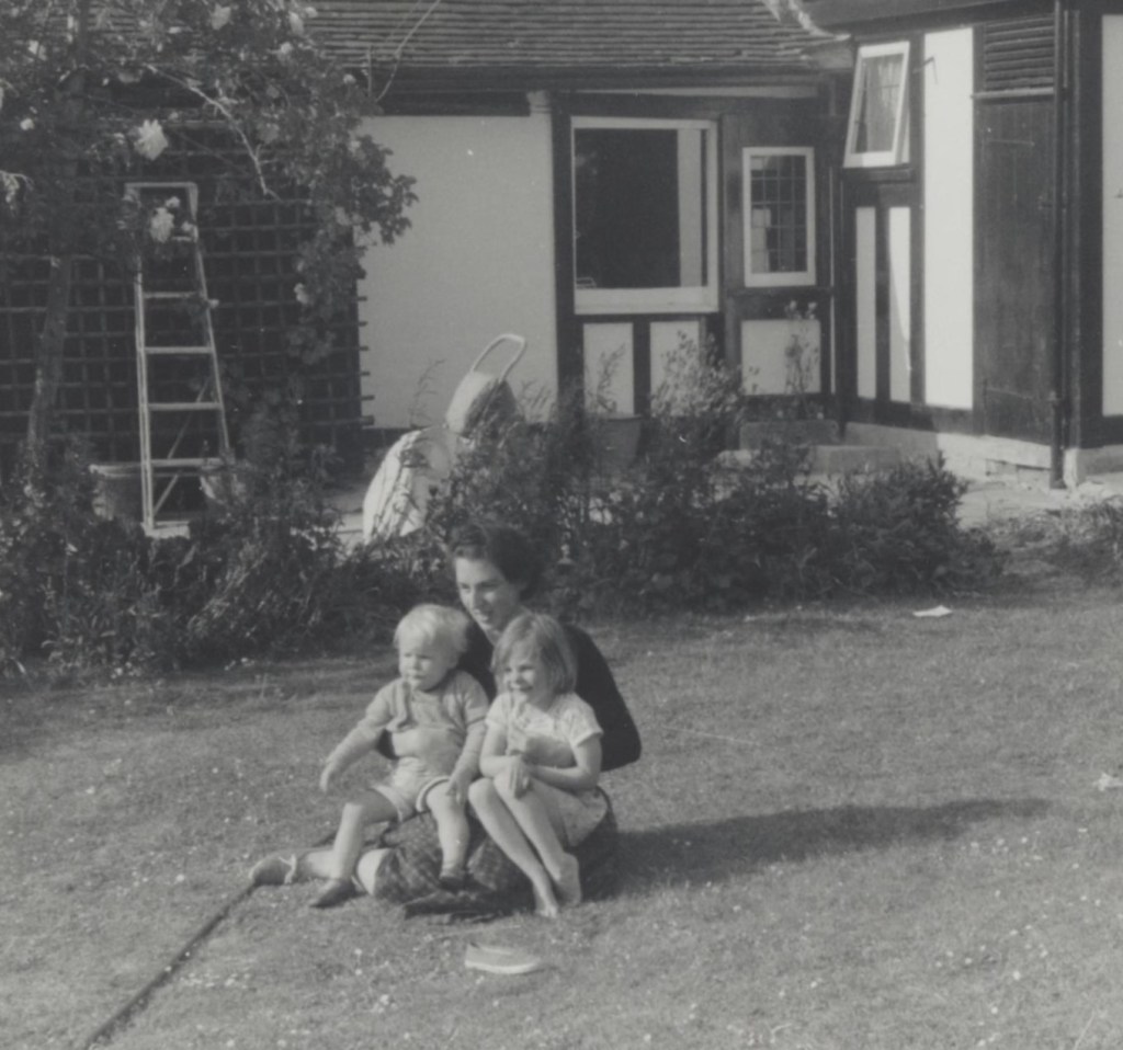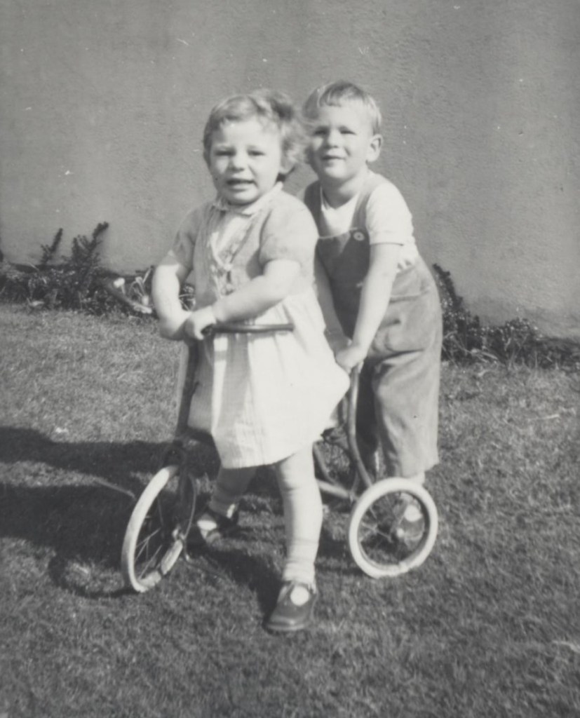 From left: myself, Jo, Guy, front lawn of Ongar Road, 1960