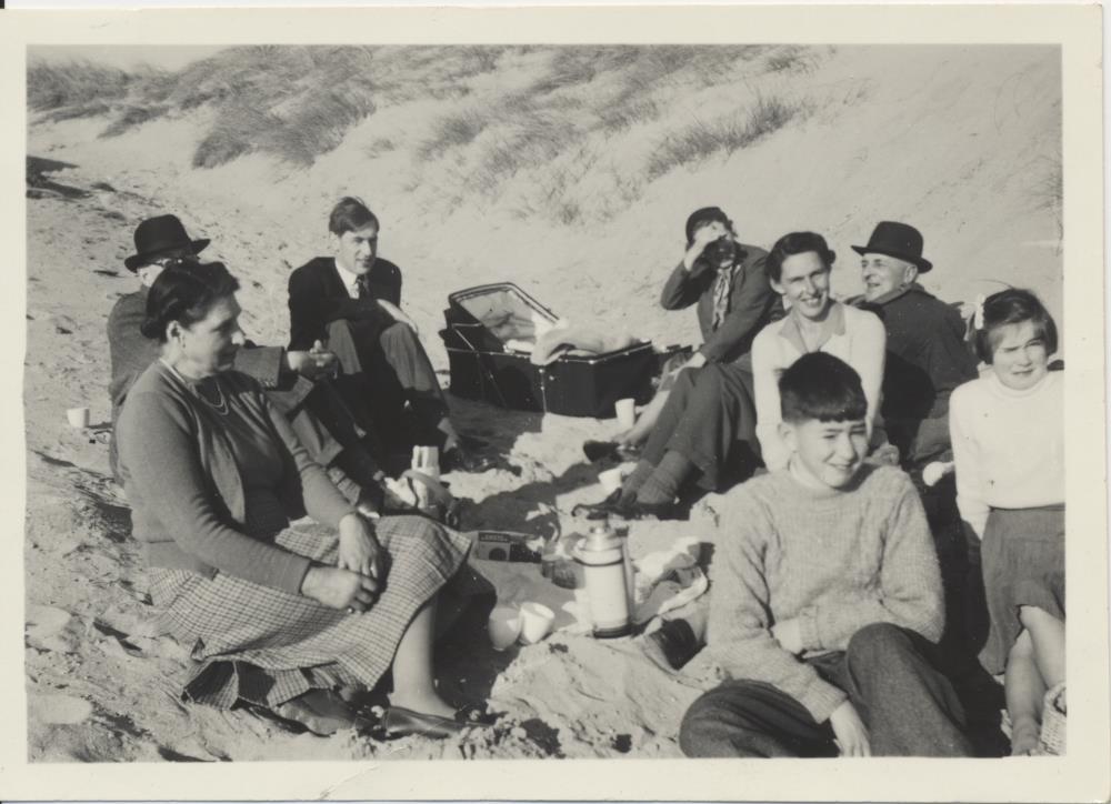 Family picnic at Praa Sands, 1956
