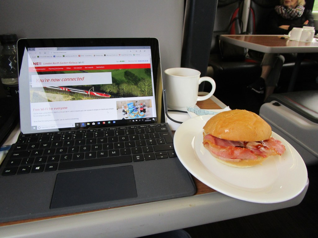 And then settle into seat for 7 hour trip to London Kings Cross – is this the first of many bacon butties?