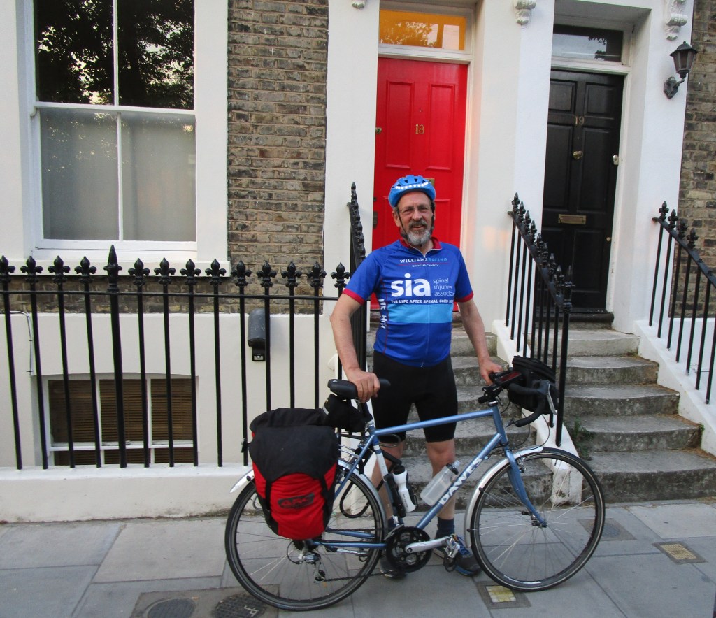 Then it was a slow peddle around to brother-in-law Michael’s house in Poplar. This is stop 1 on the route to visit everywhere by bike – this is where I stayed on nearly all work trips to London, very comfortable, very hospitable and definitely off London’s beaten tracks (though remarkably close to Canary Wharf). Total today so far: 9.9 km, got lost twice….