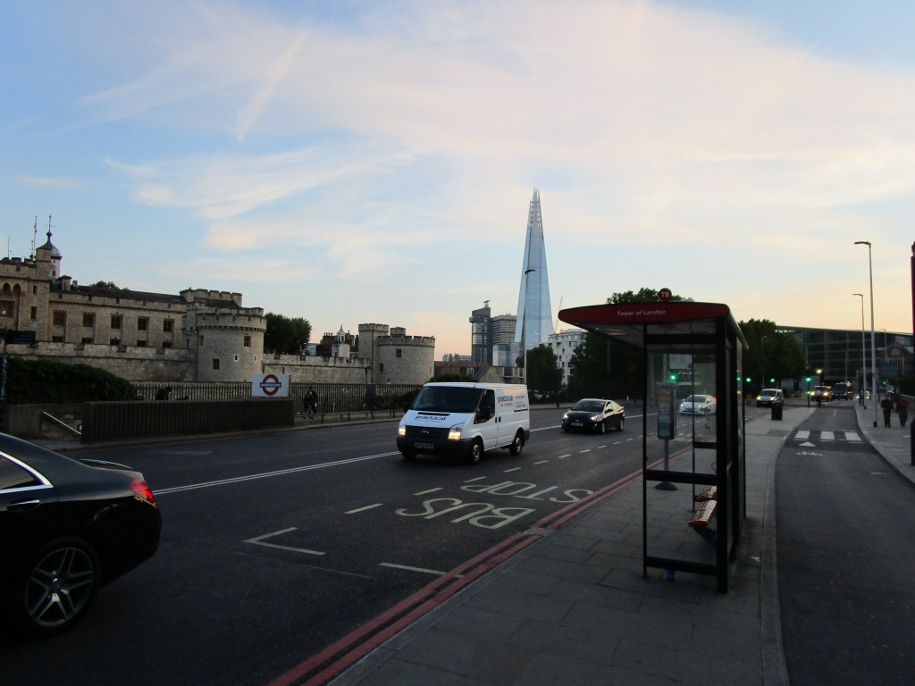 Tower of London and the Shard, one is low and closer, the other is the tallest building in Europe, but further away…