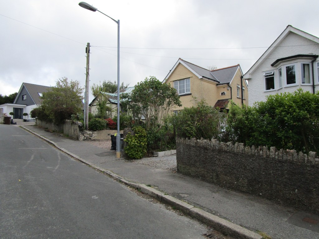 Carn View now – the bungalow next door has had its roof removed and there is planning permission being sought for two large blocks with multiple flats. A new house is visible in the fields, just the tip of a large development iceberg on the south of Redruth