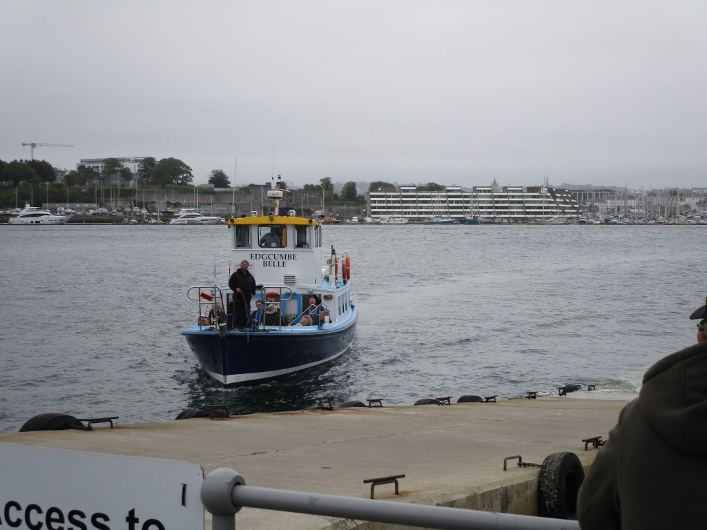 Onto my third county (including the London ride). A short ride from cousin Judy and her husband Harry’s house to a tiny ferry across Plymouth Sound, with good but brief views of old Naval buildings (now converted to flats). The ferry was free to me as a fellow passenger decided to be charitable and paid my fare using his multi-crossing ticket. I failed to ask his name, but if you read this – thank you very much.