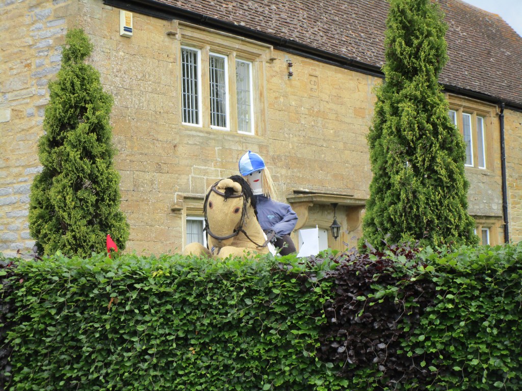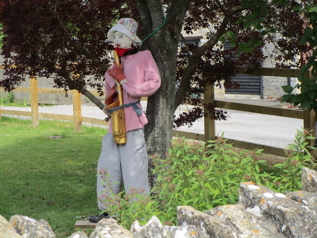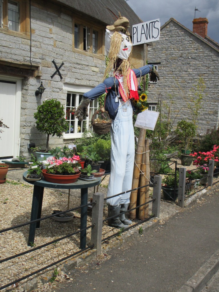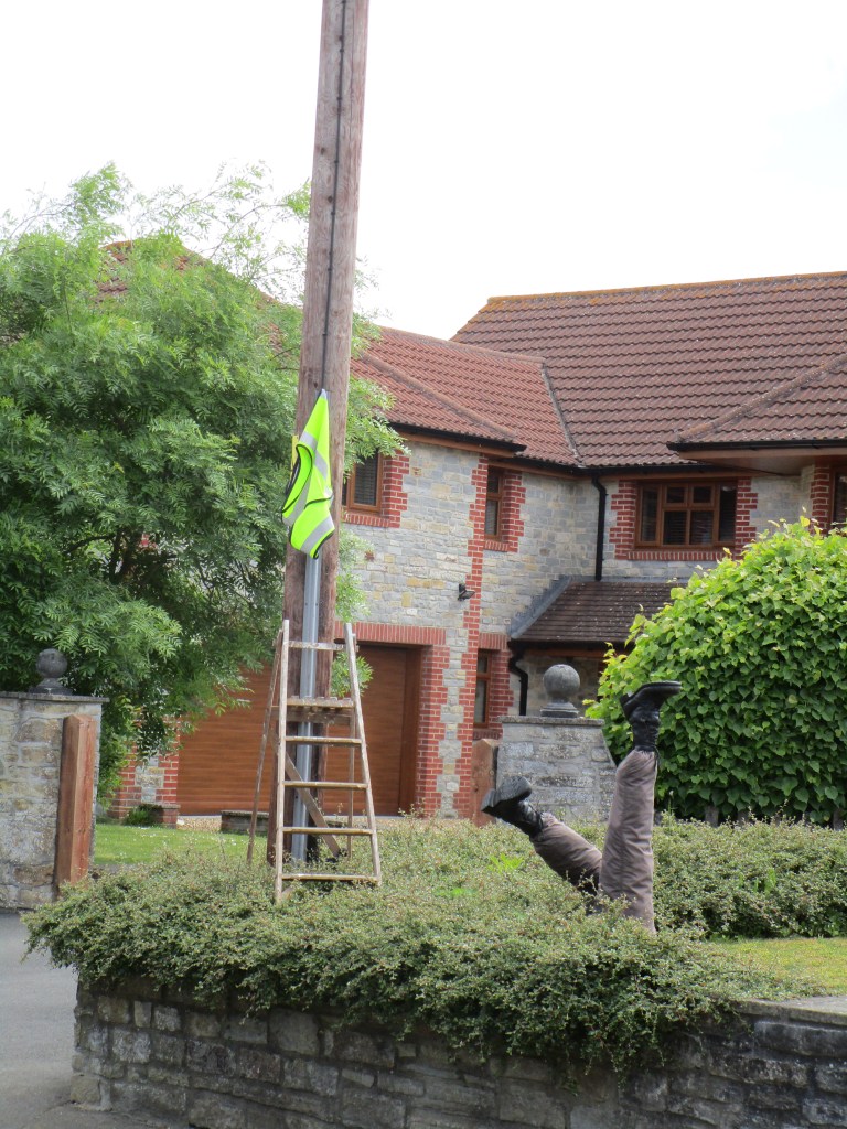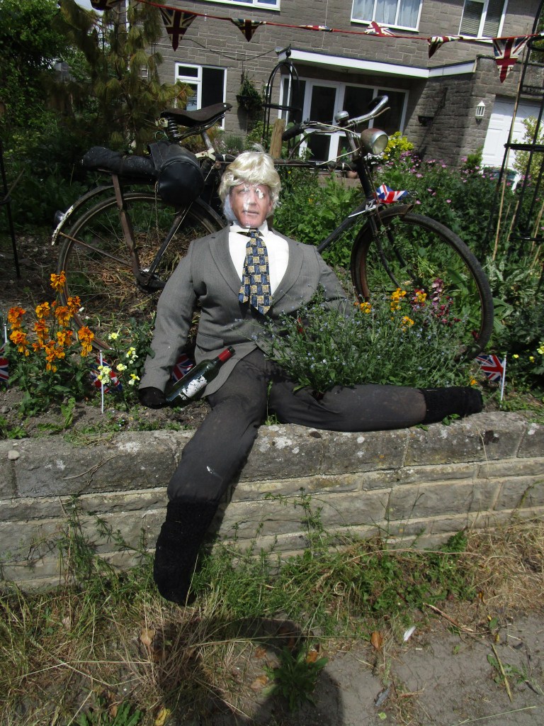 Today was (as they say) one of two halves. It was a relatively short ride to my cousin’s house in Somerton (the ancient capital of Wessex – learned from the town sign on the way in). The route took me through some fine rural agricultural landscape, and onto a section of road closed for repairs. Not knowing what the diversion looked like, I negotiated to walk past the road-menders who had ripped up all the tarmac for about 1 km and were also replacing the manhole covers etc in the road. This was excellent as I had about 3 km of B road completely to myself. Towards the end I came to the village of Long Load (I imagine there are many jokes) where most front gardens had some sort of scarecrow/guy in attendance. Here are just a few of those.