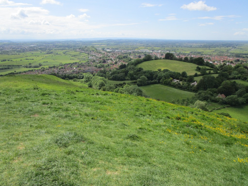 Glastonbury from the Tor – the Bristol Channel on the horizon