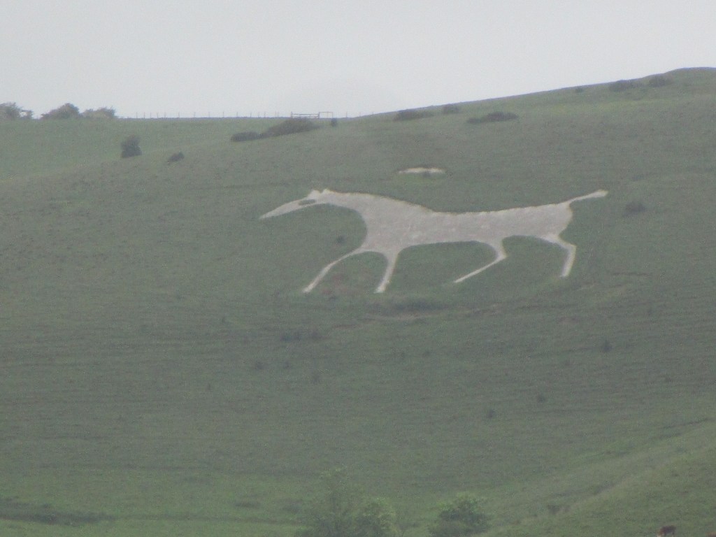 The Pewsey Horse in the chalk of Marlborough Downs (haziness due to rain!)